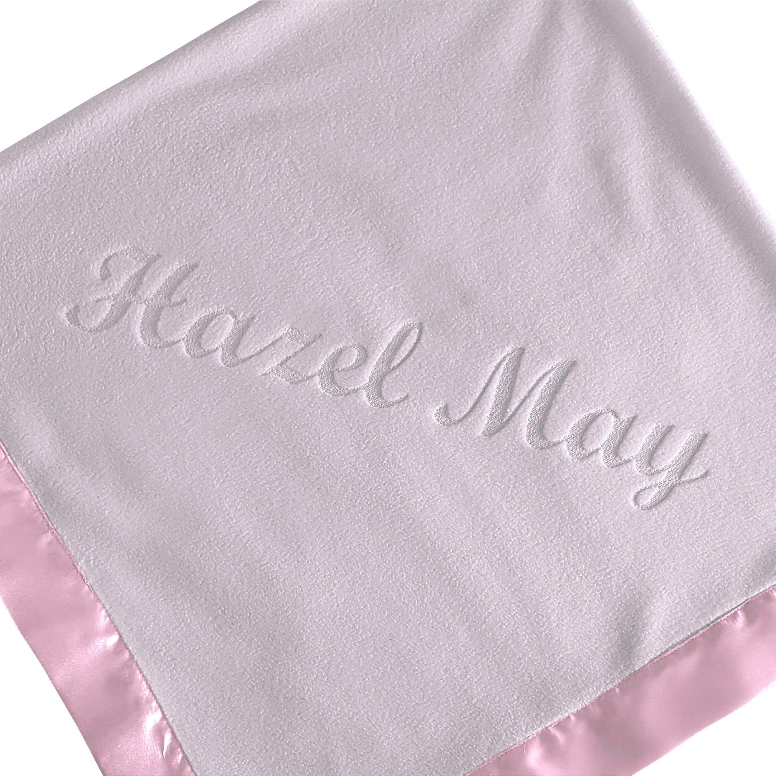 30x30" Soft Embroidered Personalized Baby Blanket. Monogrammed fleece. Practical Baby Shower Gift. Newborn photo prop. White Nursery pink