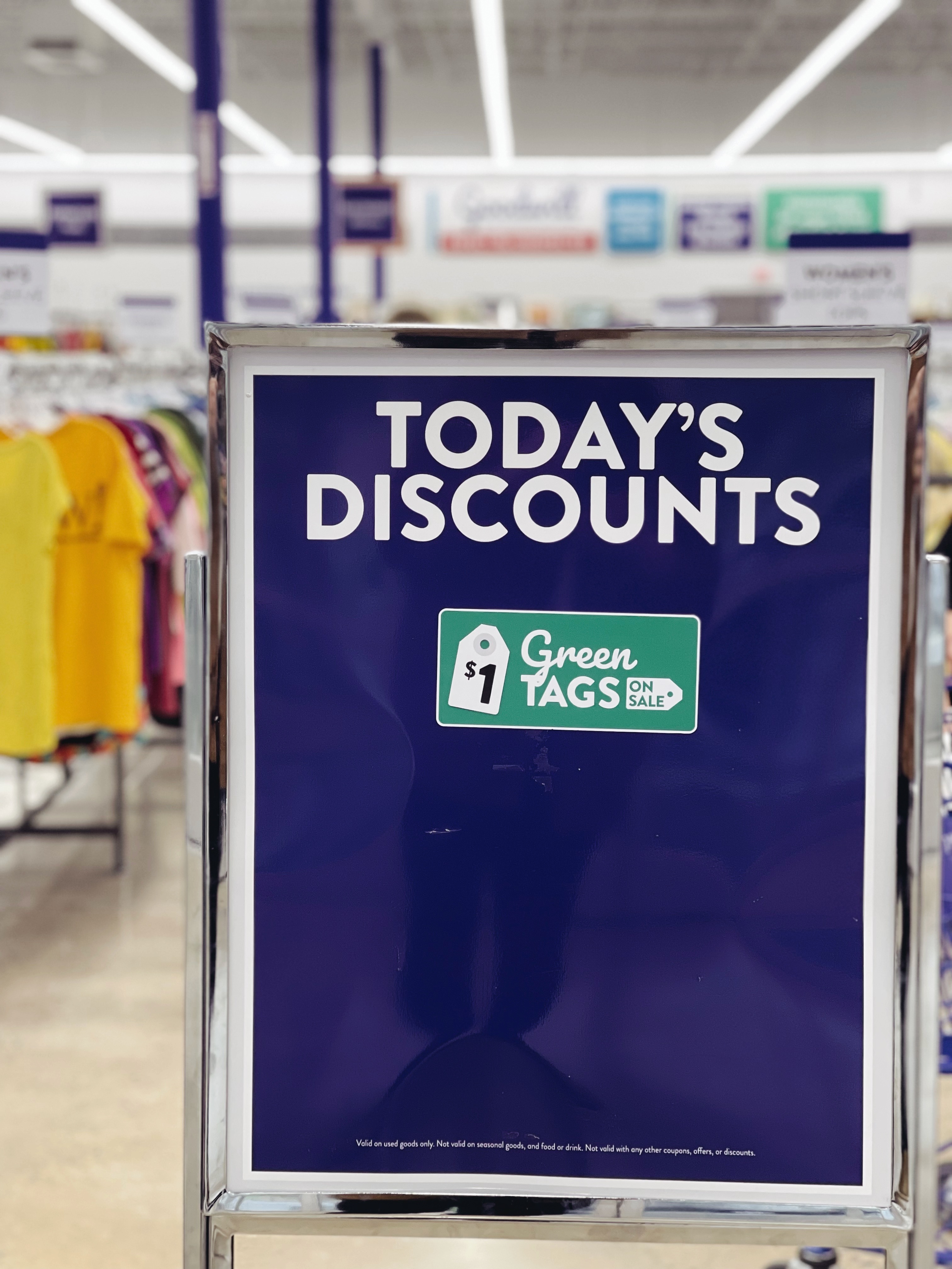 Arizona Goodwill 20% off Coupon 2022 + Discount & Sale Days Goodwill 20% off coupon for each month in 2022. Save 20% off at Goodwill with a coupon that is updated each month. ... Goodwill Dollar Tag Day. Every Thursday, a specific color tag is only $1. There will also be another color that is 50% off, so Thursday is a great day to shop.