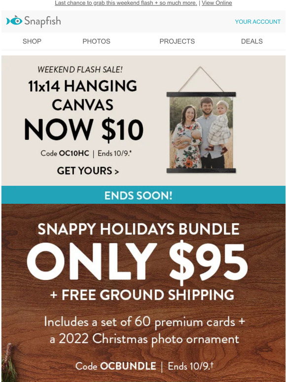 Snapfish Promo Code – 50% Off – October 2022 Oct 10, 2022 · 50% off all Purchases at Snapfish! Check out the most recent, valid Snapfish Promo Codes for October 2022. Current discounts: 15 – All tested, verified and updated. Deals | Coupon Codes | Photo Card + Gift Discounts | Snapfish US How to Redeem Your Snapfish Coupon Code. ... Shop items you can pick up in store. *Program Terms . 1. Only available on the eight products shown on this page: 5x7 ... 90% Off Snapfish Coupon code - October 2022 - CNET Snapfish COUPON INFORMATION. Expiration Date. 90%. Snapfish Promo Code: 90% off 4x6 Prints. October 31, 2022. 70%. Snapfish Promo Code: 70% off Sitewide. Currently, there is no expiration date. 50%. Save Big: 50% off Sitewide. Currently, there is no expiration date. 50%. Save Big: 50% off Your Order. Currently, there is no expiration date. 50% ...